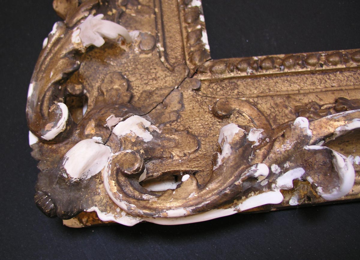 ampc2k-during Posted on April 14, 2009 by gildedfarmer A corner of the frame showing the repairs we made and the re-carving of a new foliate element at the upper left.